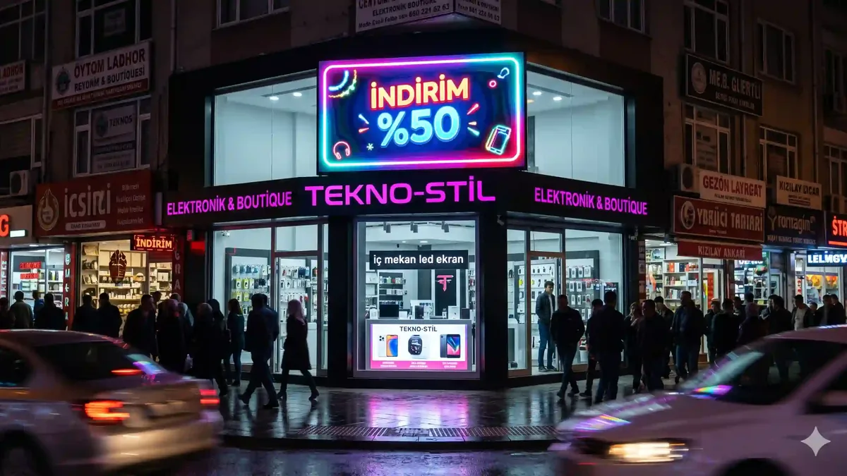 Dijital dönüşüm yalnızca dış cephede değil, dükkanın içinde de gerçekleşir. İç mekan LED ekran çözümleri, vitrinde veya dükkan içinde konumlandırıldığında kaldırımdan geçen yayaları adeta mıknatıs gibi çeker.