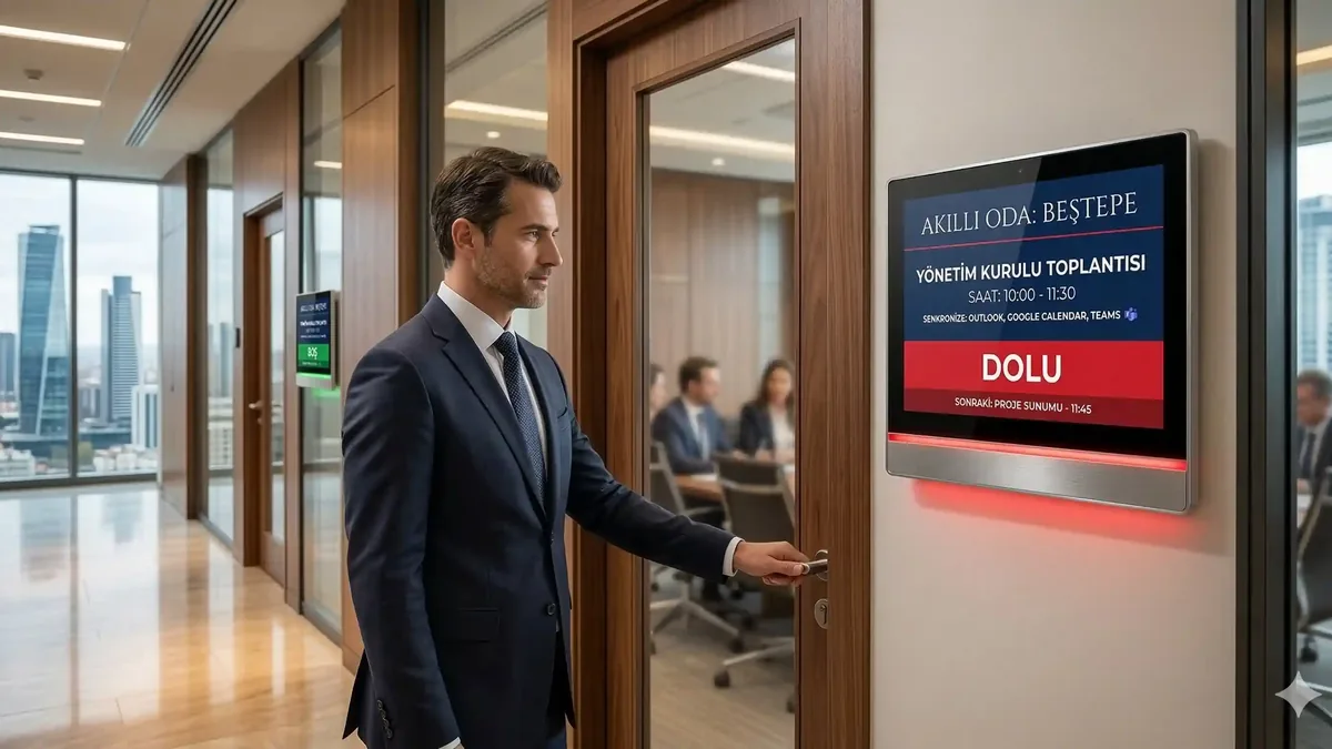 Beştepe ve Çukurambar'daki çok katlı ofis yapılarında bu entegrasyonun değeri katlanarak artıyor. Her kattaki her odanın durumu tek bir merkezi panelden izlenebiliyor; tüm katları gezmeye ya da her kapıyı tek tek kontrol etmeye gerek kalmıyor. Toplantı yönetimini dijital bir standarda taşımak istiyorsanız toplantı odası bilgi ekranlarına dair kapsamlı rehberimize de göz atabilirsiniz.